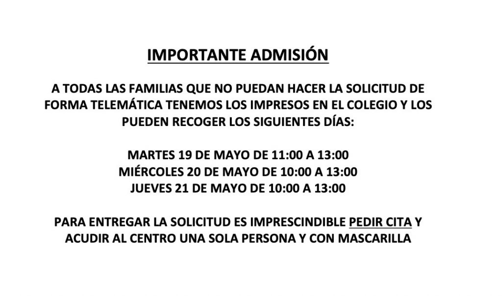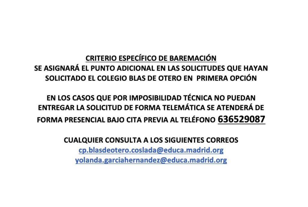 12 mayo, 2020 en Información a las familias | Abierto » PROCESO ORDINARIO ADMISIÓN ALUMNOS COLEGIO BLAS DE OTERO